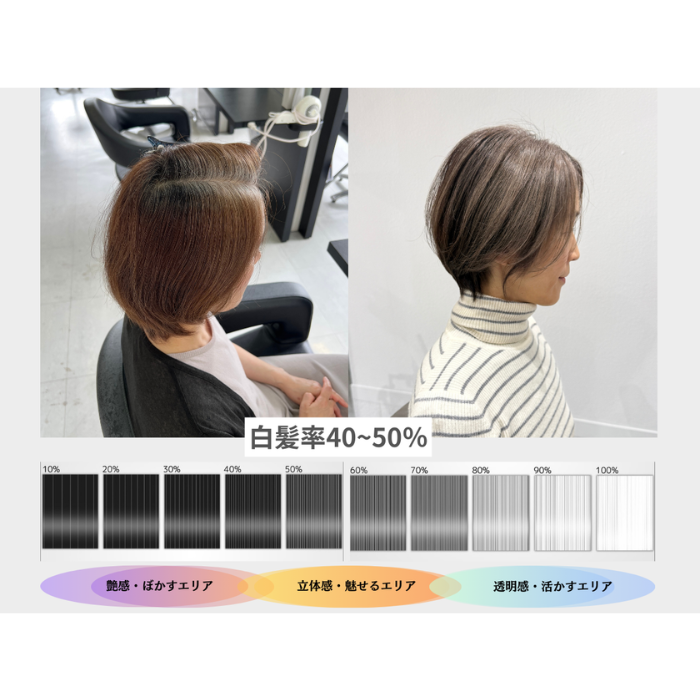 お客様一人ひとり白髪のお悩みや捉え方、白髪率も異なります。